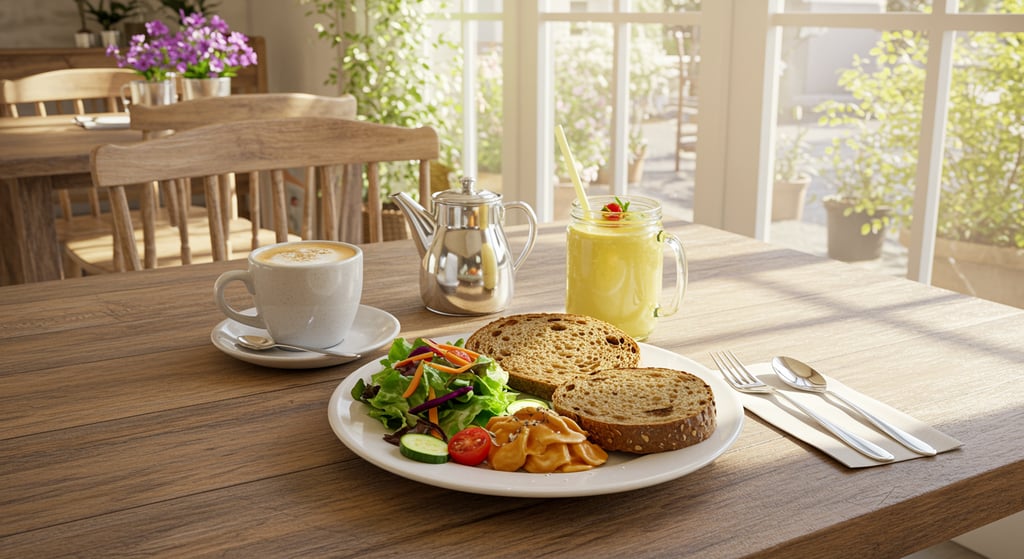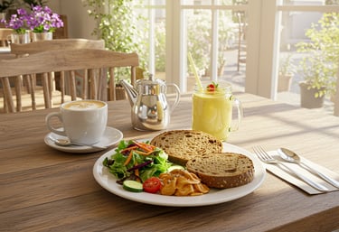 Taze sebzeler, doğal peynir çeşitleri, glutensiz ekmek, ev yapımı reçeller ve sağlıklı sürmelerle güne huzurlu bir başlangıç.